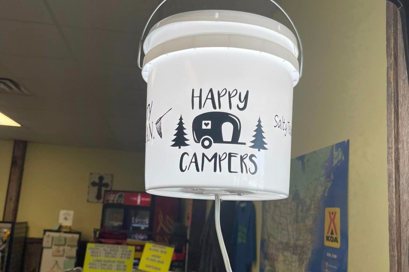 Illuminate your space with quirky light fixtures crafted from repurposed buckets! Perfect for adding a splash of fun to indoor or outdoor activities! Favorites of RV campers, we offer both plug-in or solar rechargable versions, with customizable colors. phrases and/or images.